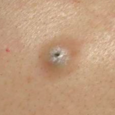 초기에는 여드름과 유사하나 악취와 크기가 서서히 커져